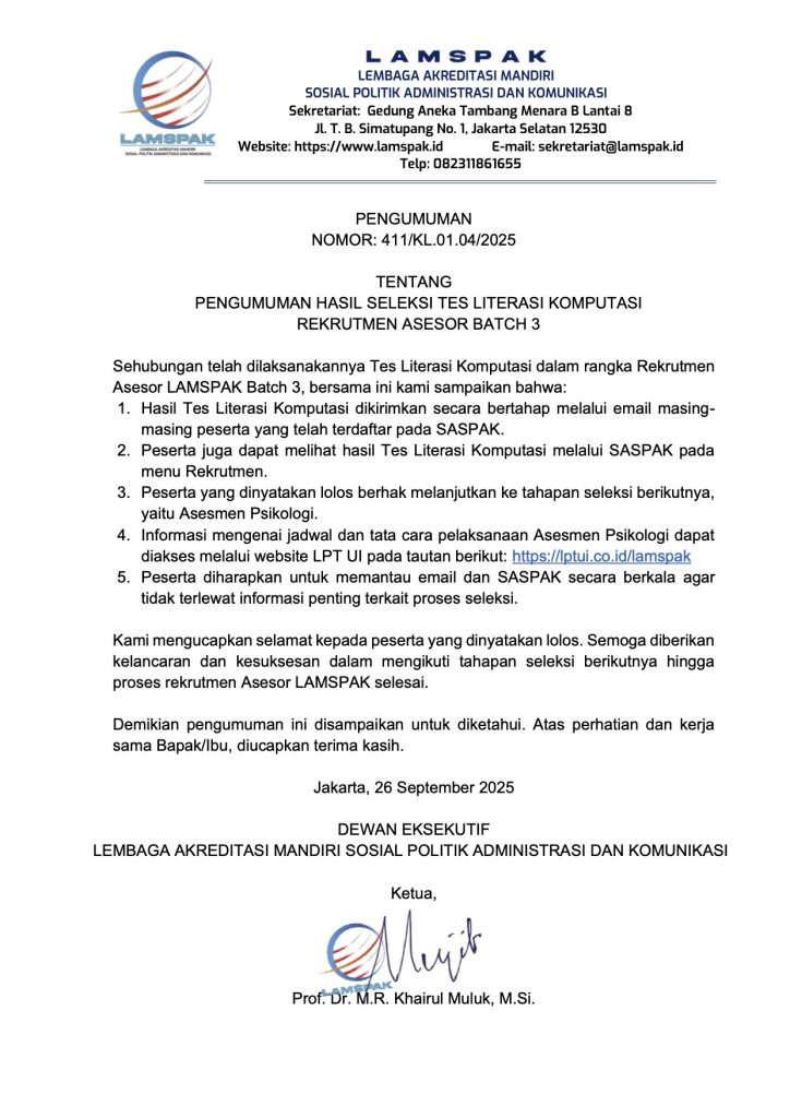 Hasil Seleksi Tes Literasi Komputasi Rekrutmen Asesor Batch 3